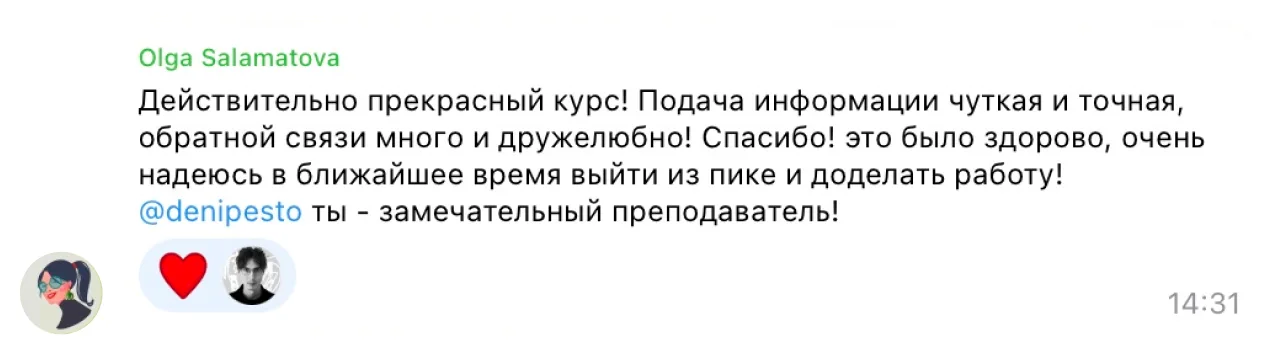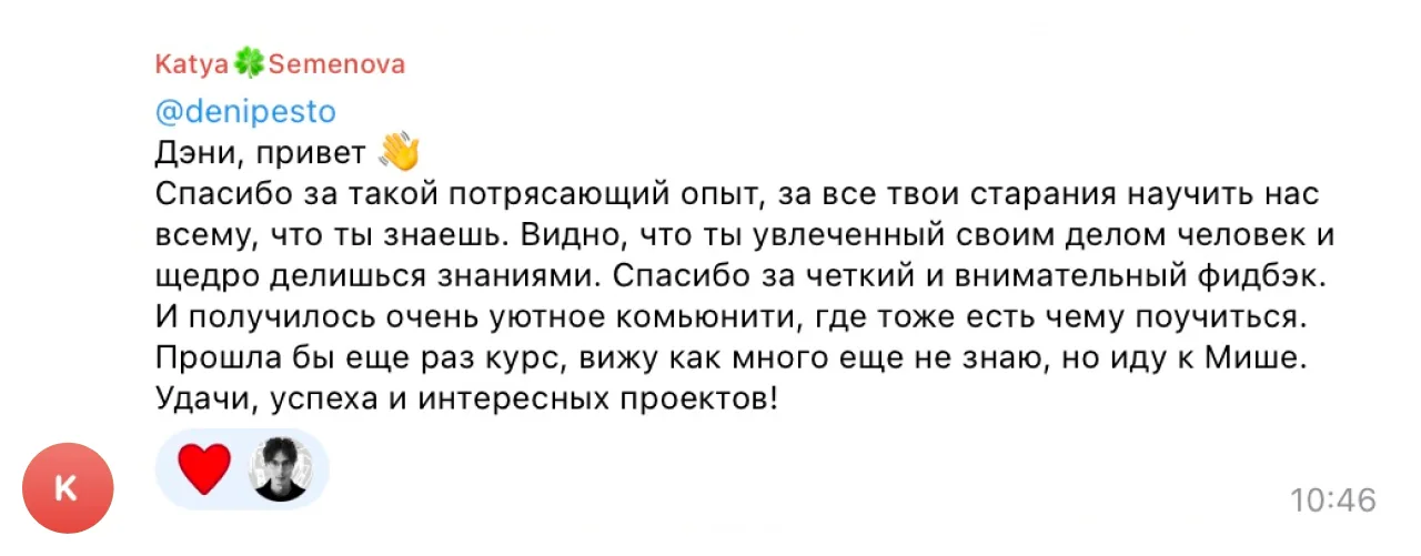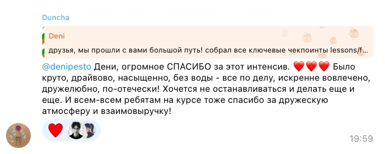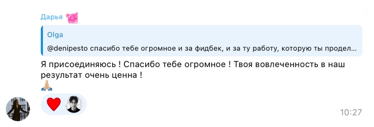постоянный фидбэк миши и дени на твою работу