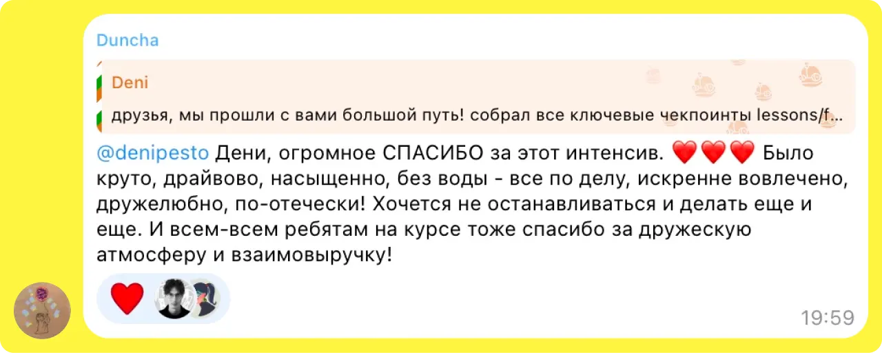 постоянный фидбэк дени на твою работу