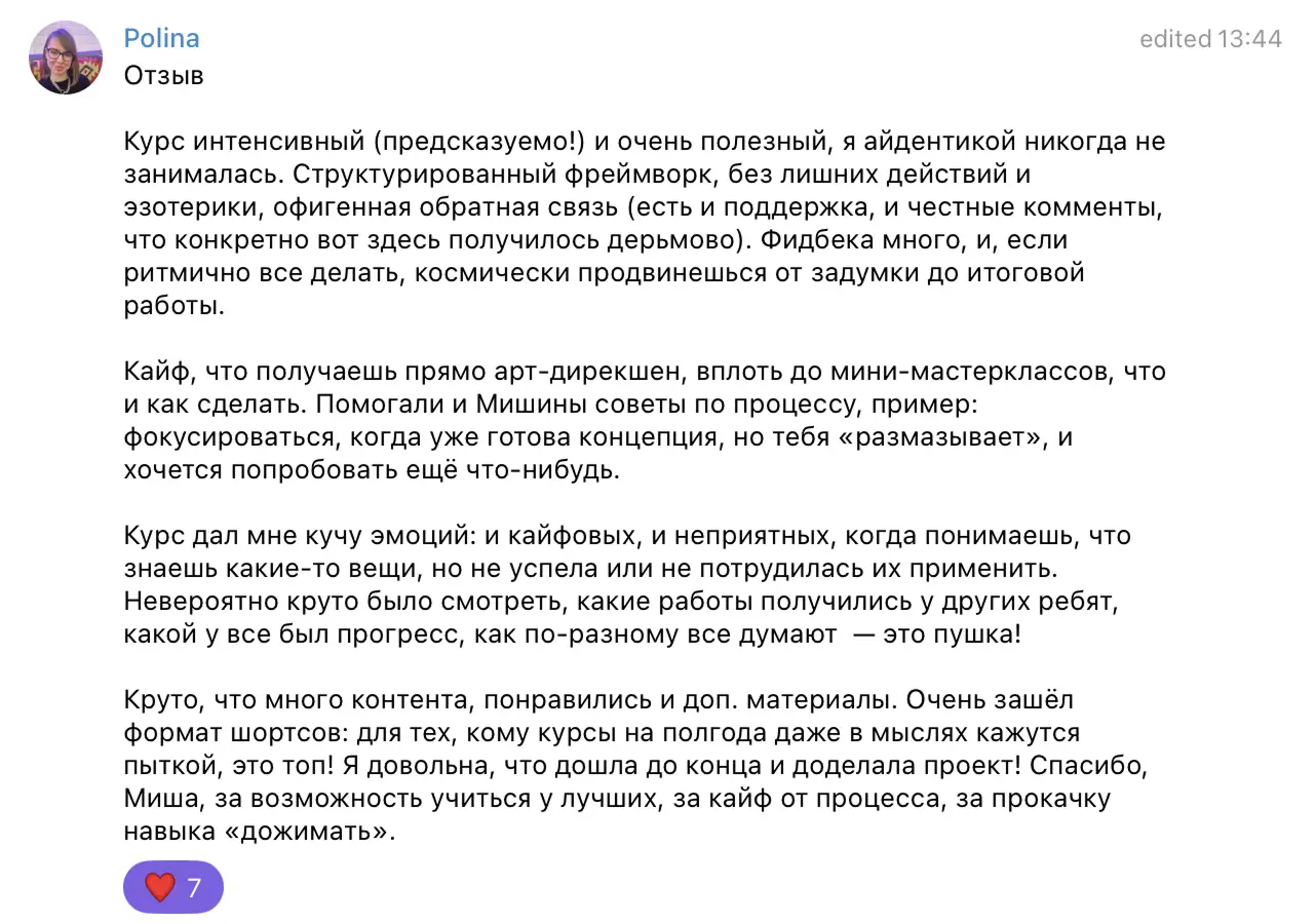 получишь редкую современную систему работы над айдентикой бренда на основе реальных ценностей и видения компании