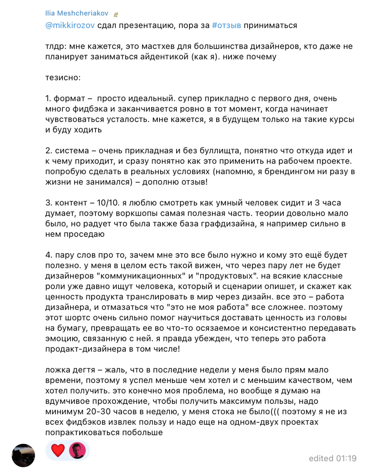 В ближайшее время на указанную почту вам придёт доступ к видео с полной версией фидбэка